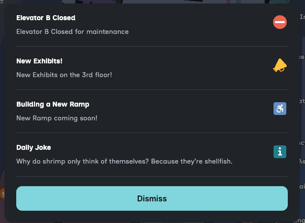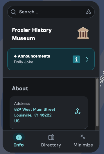 Announcements can be found in the public viewer of a map or directly through the GoodMaps app to communicate information to map users.